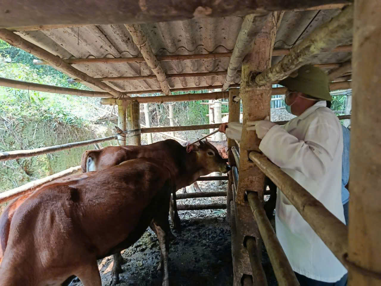 Tại các điểm triển khai, công tác tiêm phòng được thực hiện nghiêm túc, đúng kỹ thuật đối với đàn gia súc lớn như trâu, bò,… Bên cạnh việc tiêm phòng, viên chức trung tâm Dịch vụ công ích còn tận tình hướng dẫn các chủ hộ biện pháp vệ sinh chuồng trại, phun khử trùng tiêu độc và cách nhận biết sớm các dấu hiệu dịch bệnh. Việc ghi chép sổ theo dõi tiêm phòng cũng được thực hiện đầy đủ, giúp chính quyền xã quản lý chặt chẽ tổng đàn và tỷ lệ bao phủ vắc xin.