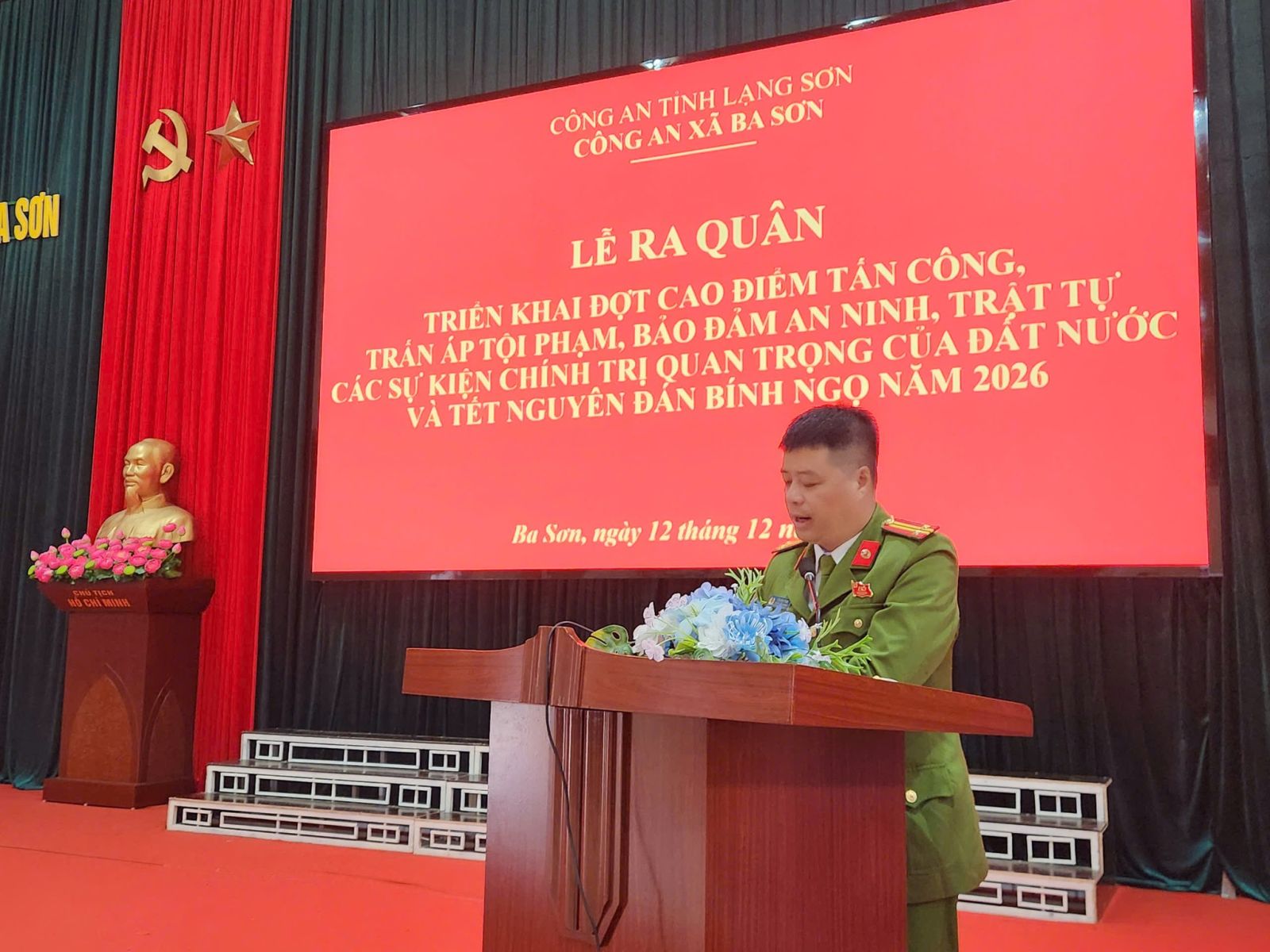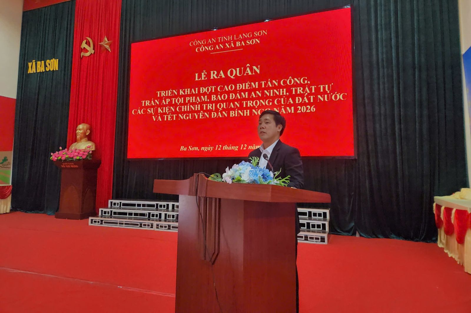 Thực hiện mệnh lệnh của Giám đốc Công an tỉnh, sáng ngày 12/12/2025, Công an xã Ba Sơn tổ chức Lễ ra quân cao điểm tấn công, trấn áp tội phạm, bảo đảm ANTT các sự kiện chính trị quan trọng của đất nước và Tết Nguyên đán Bính Ngọ năm 2026.