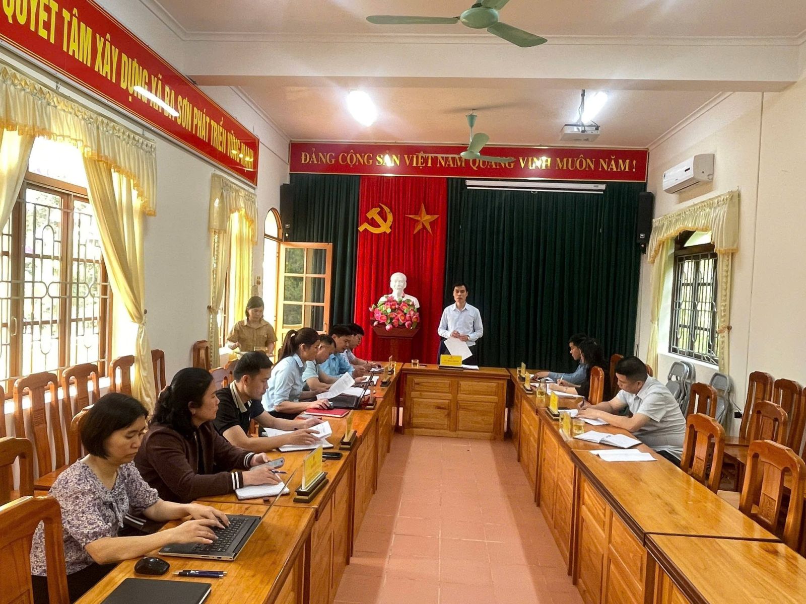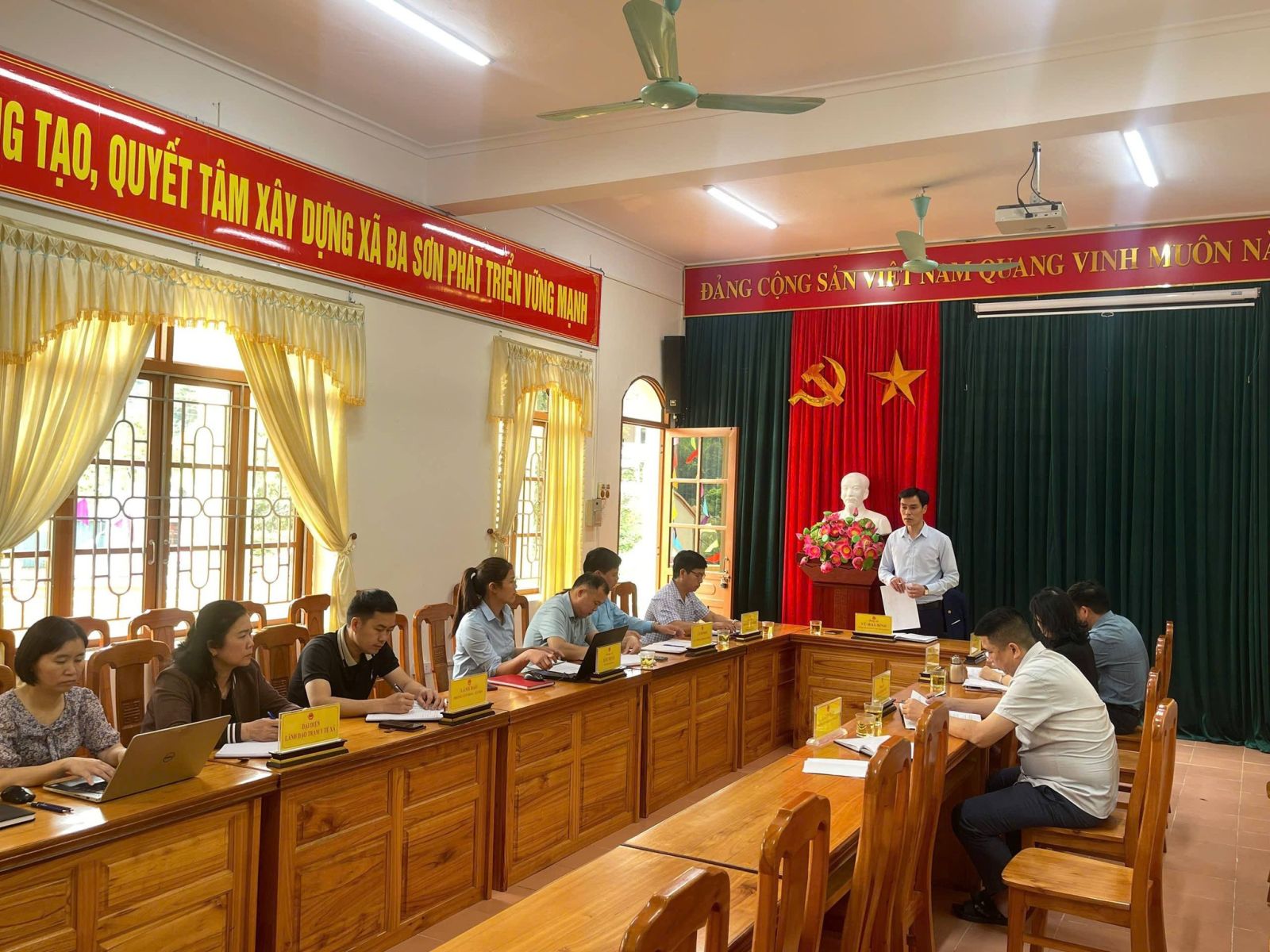 💢 Phát biểu tại cuộc họp, đồng chí Vũ Hoà Bình - Chủ tịch UBND xã Ba Sơn nhấn mạnh yêu cầu tăng cường kỷ luật, kỷ cương hành chính, nâng cao hiệu quả phối hợp giữa các bộ phận chuyên môn, đồng thời đề cao tinh thần trách nhiệm của từng cán bộ, công chức trong thực thi nhiệm vụ. Chủ tịch cũng đề nghị các ban, ngành tập trung rà soát lại các chỉ tiêu phát triển kinh tế - xã hội, từ đó xây dựng kế hoạch hành động cụ thể, phù hợp với điều kiện thực tế của địa phương.